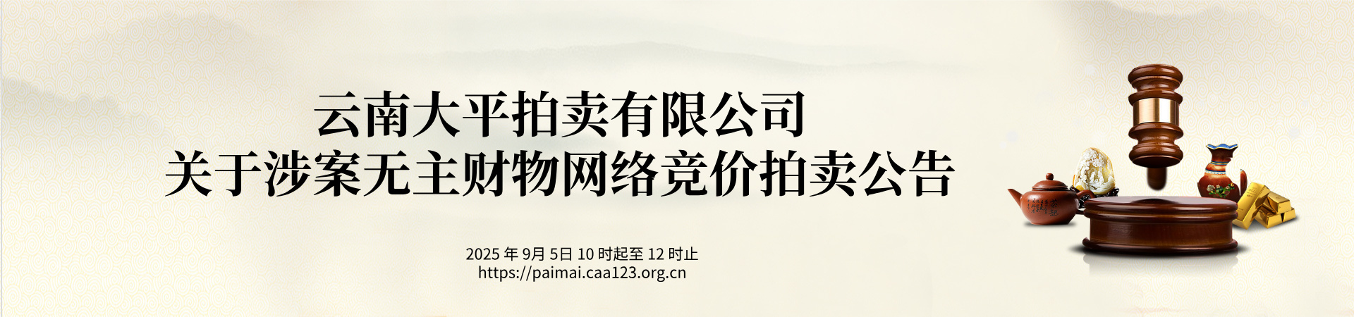 云南大平拍賣有限公司是一家經云南省經貿委于2002年6月15日批準,由思茅地區工商行政管理局于2002年7月30日核準成立的手續齊備、資質完善的綜合性拍賣企業,是一家拍賣經驗豐富、市場資源龐大、組織結構優秀的具有超前經營理念的企業。2004年被省拍協評為理事單位。 〔大平宗旨〕公司崇尚誠信,銳意進取;堅持公開、公平、公正的經營原則,秉承“客戶為本,服務至上,執業嚴謹,公平競爭”的經營理念,本著友好合作、平等互利的原則,與客戶及合作者謀求共同發展。〔大平業...詳情>>